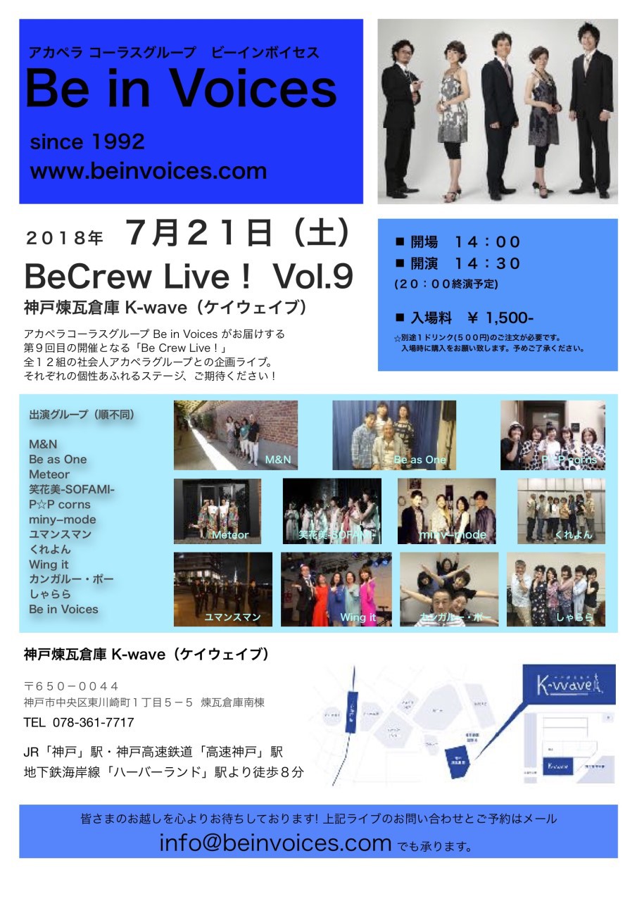 ◉Be in Voices受付:TEL 090-8204-0988 |